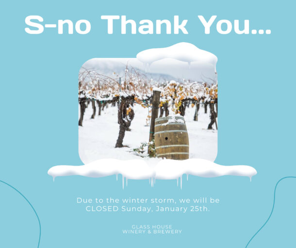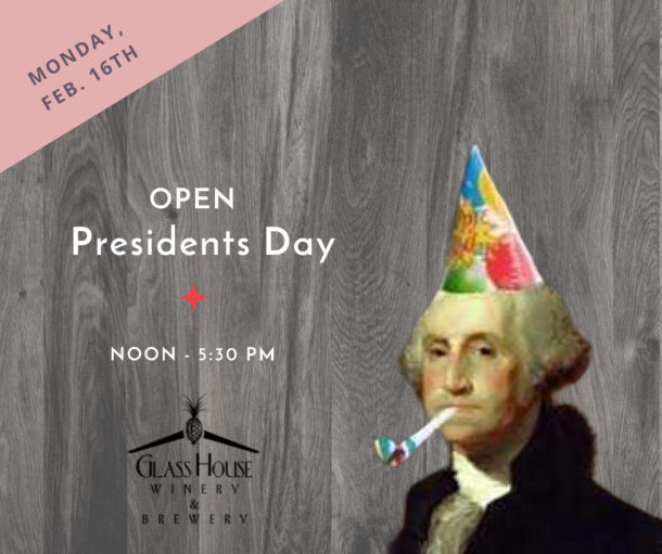 We are a great location for that special day. Our glass conservatory is the perfect place for your event, and will seat 88 at tables, and more can be accommodated in the tasting room and terraces. The tropical plants will make you feel like you’re in the Caribbean. Please review our brochure below and for availability or other questions please email our events team at events@glasshousewinery.com.